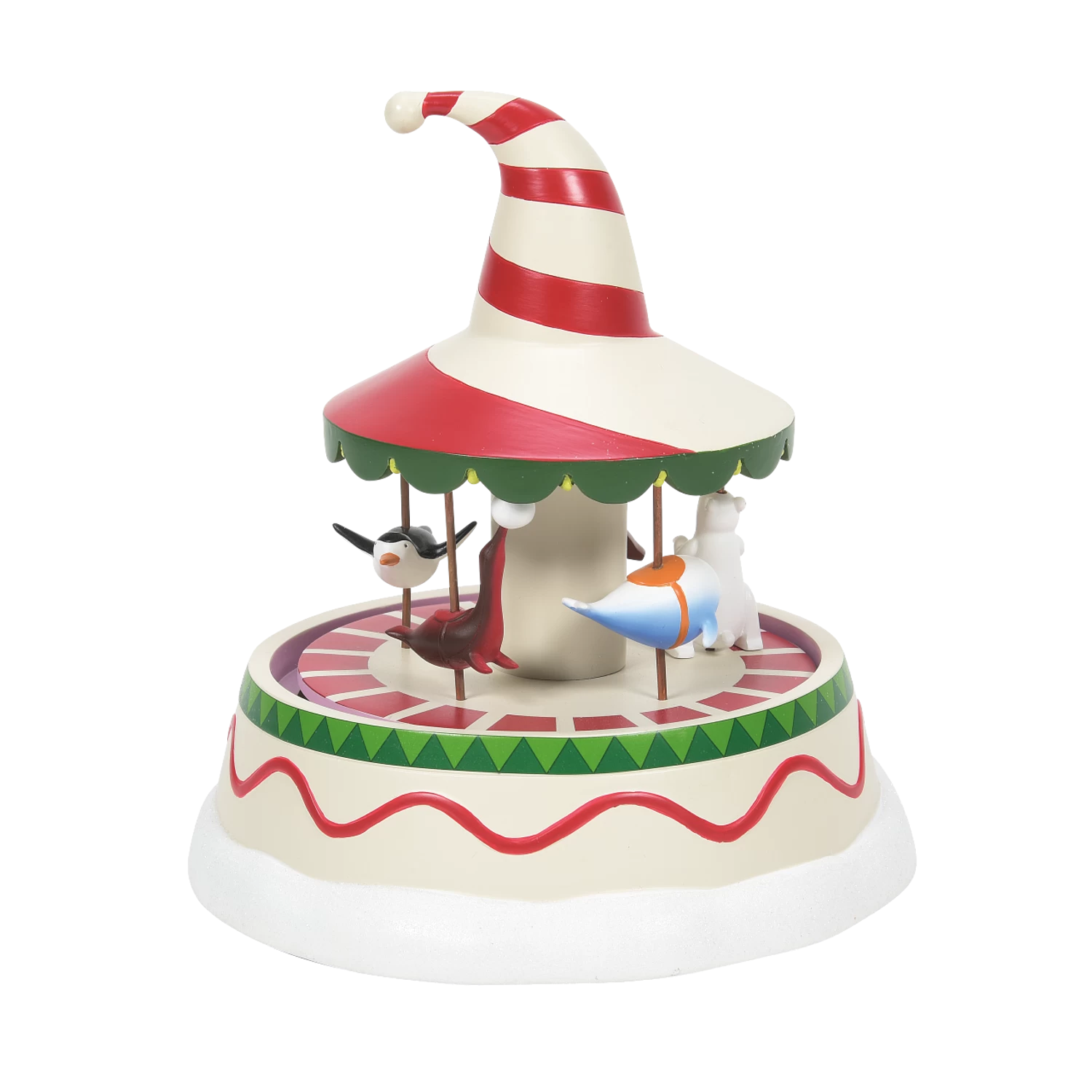 Add these nightmare-ish new pieces to your The Nightmare Before Christmas village this year! It features more key elements and characters from the beloved movie! The set features 5 brand new pieces all introduced January 2022. Jack Skellington seeing a snowman for the first time after he arrives in Christmas Town, Santa’s eclectic workshop, the fun Christmas town carousel with colorful animals, Sandy Claws checking his list, and a pair of wonky street lights!