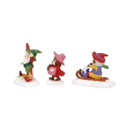 Celebrate the joy of the holiday season with our delightful three-piece set featuring playful elfin friends enjoying their well-deserved day off at the North Pole! Each figure stands at a charming 2 inches tall and captures the essence of festivity and fun, showcasing the whimsy that comes alive during this magical time of year. With one elf playfully tossing birdseed, a cheerful figure in a bright pink coat carrying shopping bags, and another relaxing on a sled, this set embodies the joy of taking a break from holiday preparations to revel in some well-earned leisure.