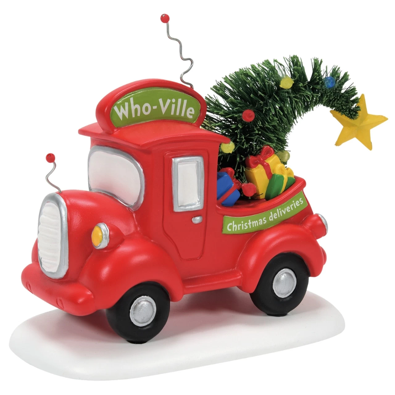 Get ready to spread some holiday cheer with the Department 56 Grinch Village Who-ville Christmas Deliveries accessory! Measuring at an adorable 4 inches tall, this accessory features a colorful Who-ville Christmas Deliveries truck, making its way down the crooked streets of Whoville, ready to make some extra special deliveries for the holiday season. Whether you’re starting your own Grinch Village collection or looking for the perfect addition to your existing display, this accessory is sure to bring a smile to your face. With its intricate detailing and vibrant colors, it’s the perfect representation of the whimsical world of Dr. Seuss. Plus, it’s the ideal way to add a touch of Whoville magic to your holiday decor!