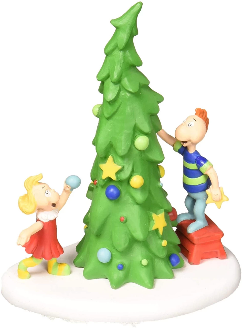 Created by the whimsical Dr. Seuss, the Grinch and the Who’s of Whoville will make your Christmas collection very merry. Your heart may even grow three sizes. Half a tree decorated is a familiar sight to anyone with kids! Cindy Lou Decorates A Christmas Tree With Help. He Stands On A Stool But Still Cannot Reach The Top!.