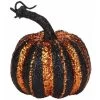 Glammed up for the holiday, these six shiny pumpkins reflect their LED lights as they swing on an electrical wire. The string is powered by a battery box which is included or it can be converted to AC/DC adapter (#4035316 or 56.55026).