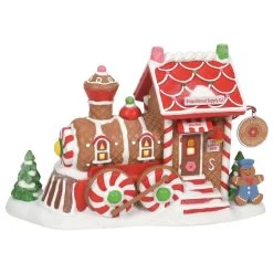 Introducing the Department 56 North Pole Village Gingerbread Supply Company lit building – a charming, 5.12-inch tall porcelain masterpiece that captures the magic and whimsy of the North Pole! This festive building is shaped like the engine of a train, and it’s where all the elves go to stock up on molasses, nutmeg, ginger, and cinnamon for their delicious gingerbread creations. Step into the world of the North Pole, where even the simplest of tasks become a source of joy and wonder. The Gingerbread Supply Company lit building is a testament to the ingenuity and resourcefulness of Santa’s workshop, and it’s the perfect addition to any holiday display.