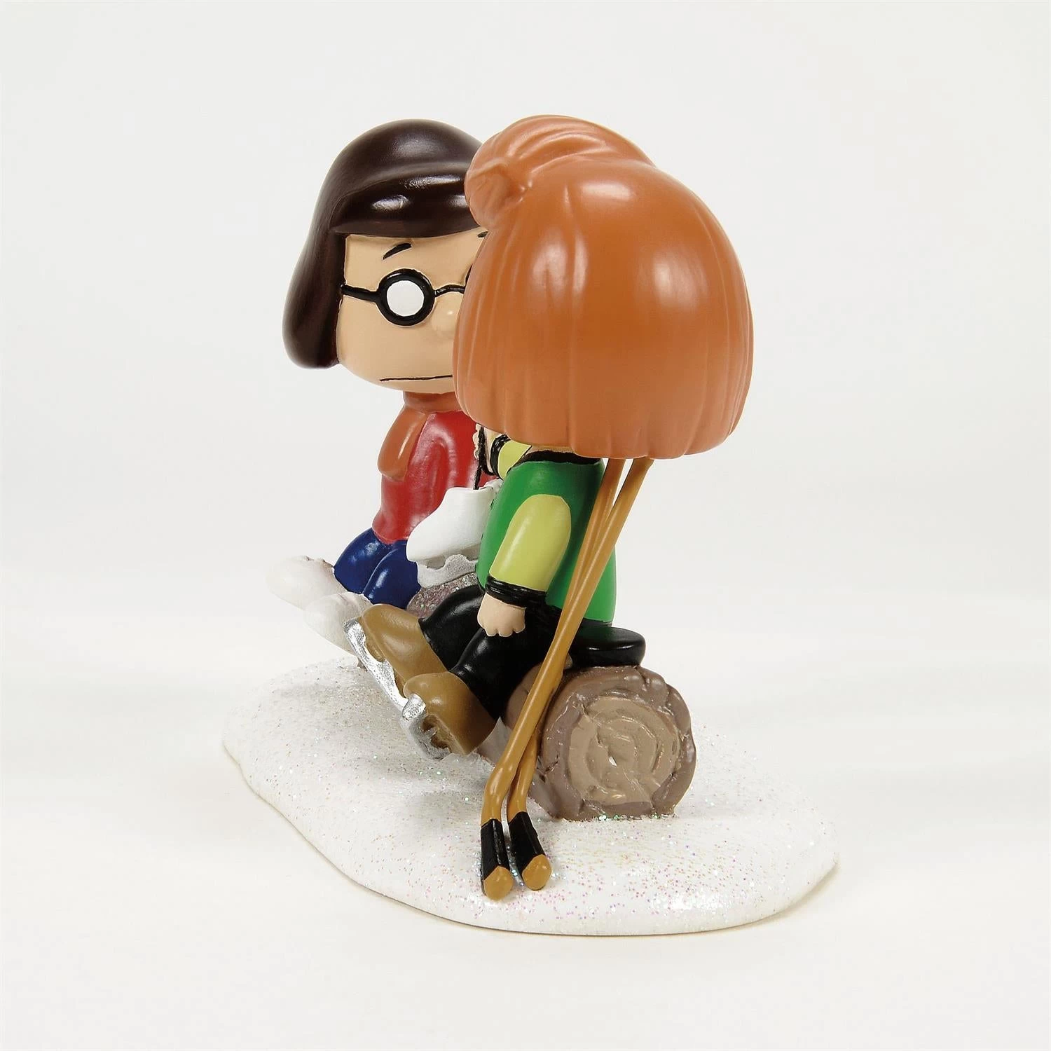 Celebrate the joyful spirit of winter with this delightful figurine featuring Peppermint Patty and Marcie by Department 56! Standing at just under 3 inches tall, this charming piece captures a heartwarming moment as the two beloved Peanuts characters sit on a log, happily putting on their ice skates. Peppermint Patty, clad in her iconic red sweater, shares a playful exchange with Marcie, who is ready to join in on the fun, perfectly reflecting the camaraderie and innocence of childhood.