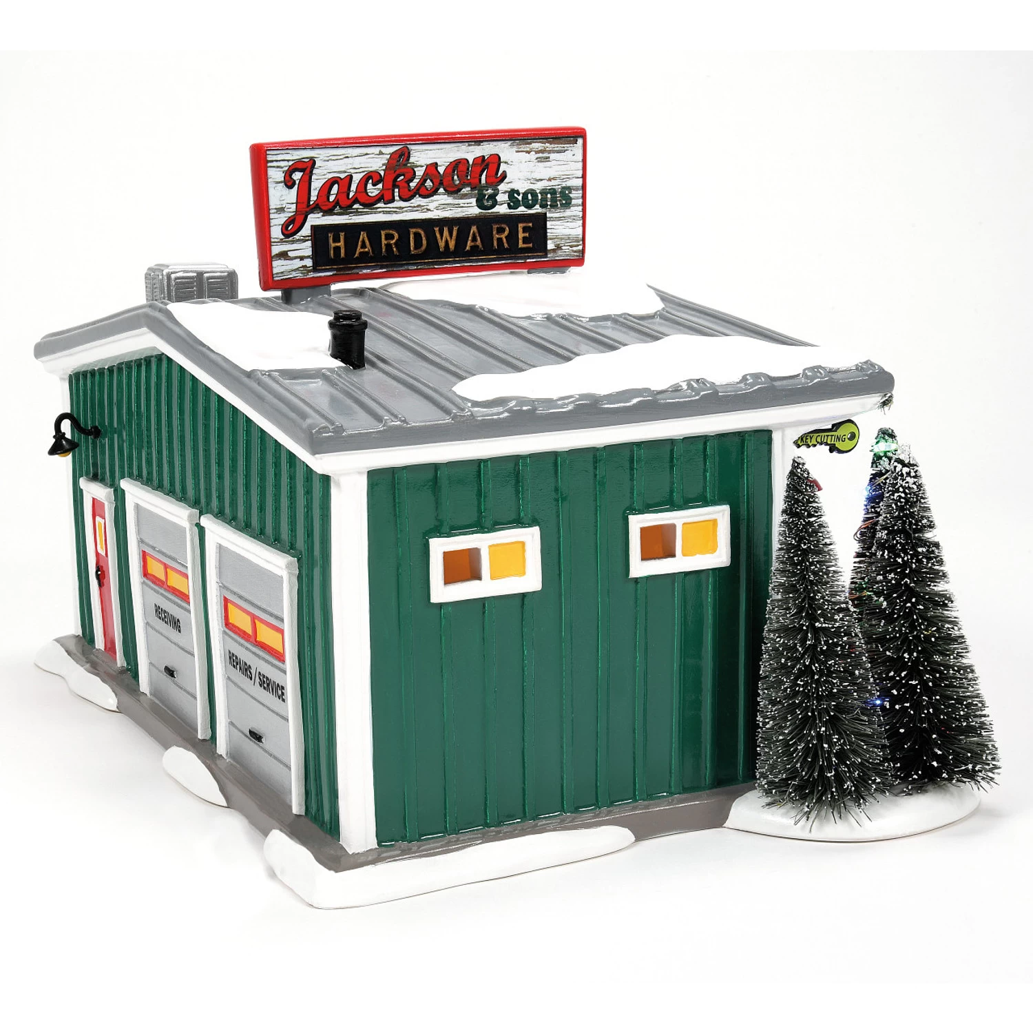 Rick, the head creative at Department 56, has entered into retirement and to celebrate all the work he’6013447s done and amazing pieces he’s help create they have made a piece that embodies him! This building features a quaint green small town vibe hardware shop with large windows filled with tools and posters. The front doors are decorated with red bows and wreaths and a welcoming OPEN sign. Outside of the front of the building is dotted with tools and fall decor while the back of the building has a pair of large bay doors for everything business! Introduced October 2023. Made by Department 56. Made of Plastic, Zinc alloy, AC Adapter, Ceramic. Dimensions: 6.46in H x 6.85in W x 11.38in L. Item #: 6013447