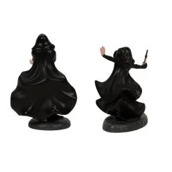 Introduce a thrilling dose of intrigue to your holiday village with the formidable “Lucius Malfoy and Bellatrix Lestrange” figure set, standing at 2.64 inches tall! This captivating duo captures the essence of two of the most notorious Death Eaters who stood steadfastly beside Lord Voldemort, representing the dark allure and complexity of the wizarding world. With their flowing cloaks and intense expressions, Lucius with his trademark air of superiority and Bellatrix with her manic energy, these figures embody the essence of pure-blood supremacy and the chaos they brought to the wizarding community.