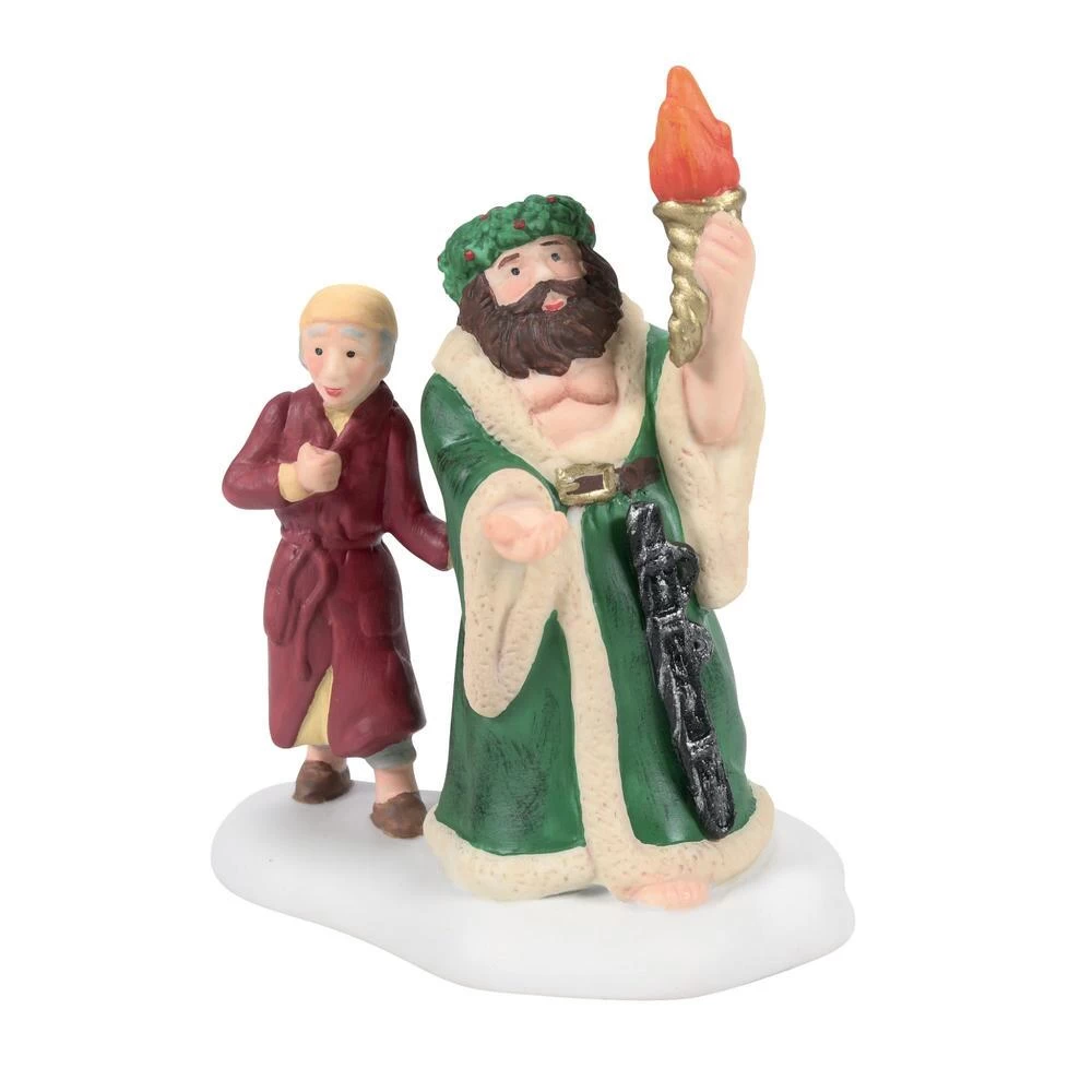From Dickens’ most popular story, A Christmas Carol , the Spirit of Christmas Present appears to Ebenezer dressed in a green velvet robe. Together they travel through the city seeing the celebration of Christmas, from the very rich to the very poor.