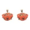 Tall Halloween battery-operated lantern black glitter base with black spider web ornamentation.